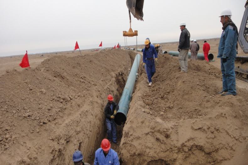 This project includes construction of a pipeline to transfer water from the station Al-Malih to CPECC, same amount of oil extracted from the wells to prevent a collapse in the soil of the well.